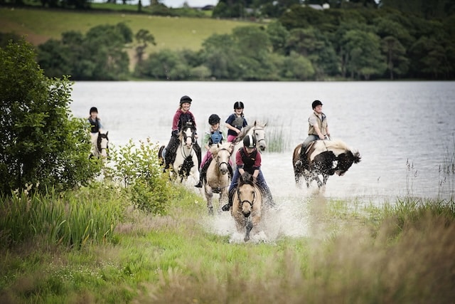 La familia lleva al alumno a un club de ponies donde podrá interactuar con irlandeses y participar en actividades como cepillado y lavado del pony o mantenimiento de la cuadra. También se dan dos horas diarias de clases de salto de obstáculos y cross country, juegos a caballo o juegos forestales.
